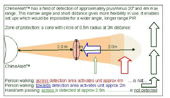 ChimeAlertJointly developed with the National Trust, this alarm is best suited for room protection in historic homes where the public can view rooms but whole areas need to be off limits. Ideally used in combinations, two or three these units are sufficiently low range and narrow field to work behind rope barriers or some form of room demarcation. It enables you to create a "field of protection" where a toddler or adult will be chimed at if they wander too far off track and too close to the valuable exhibits. These form a second layer of security* behind a white line, rope barrier or raised level. Indeed you can now remove the rope barrier as long as some subtle distinction is still present. ChimeAlert sounds a chime three times (loud doorbell) which may persuade the visitor to go back to the path and will certainly attract the attention of a room warden. The unit then automatically resets. * click here for explanation of layers of security |